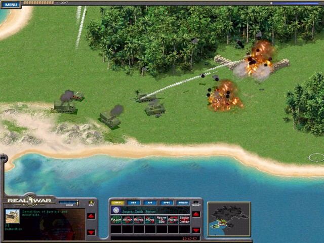 Simon & Schuster's Real War is based on Joint Forces Deployment, a tactical-combat simulation developed for the US military. Players can assume control of either the US forces or a terrorist group known as the Independent Liberation Army, and each side includes 12 scenarios and around 40 hours of gameplay. The game features more than 50 different types of real-life units, including infantry, armored vehicles such as the M1A1 and the T80, nuclear submarines, and aircraft such as the F16 and the B52. Real War is in development at Rival Interactive, and it is scheduled for release in August.