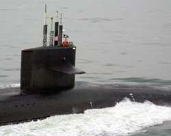 | Official U.S. Navy file photo of USS Florida (SSBN 728). Florida recently took part in Giant Shadow, the first in a series of experiments overhauling and converting four Ohio-class ballistic missile submarines to guided-missle submarines. |