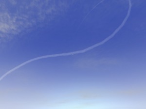 Finally, I couldn’t take it anymore. I had to write Oleg another note. FANTASTIC, my friend. I cruised my 109 up to 3200 meters, pointed the nose down for fifteen seconds, and pulled a loop. I switched to an outside view at the bottom and took some more screens. There it is, the whole loop written in vapor in the sky. You saw it here first!