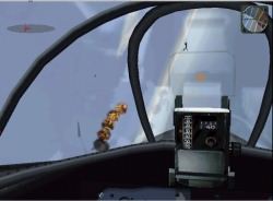 ![]() F51 Cockpit Pan View As we neared the target area, we could make out the smoke of about ten trains. Ordered the wingies to engage and rolled into a dive to take a look-see myself. Made a high speed, low level 90 degree pass to inspect the trains and scanned for AAA. Almost flew too low as my wingmen's rockets passed just below me! Luckily, they hit a train. It was close though. The trains were just locomotives with no cars in tow. Now, I've seen this in the SO before, but never in the first week. It appears that the focus on the rail system is paying dividends. We destroyed all the engines and upon return to base were credited with 27 vehicles destroyed and 273 tons! A large MiG formation that passed over us made for a anxious flight home, but they elected not to engage. Good thing too. Only 4 Sabres vs. 30 MiGs ain't what they taught you in flight training. No further progress on the ground to 11Jan. UN holds initiative on all fronts. All squadrons at about half strength. It should be noted that Sinuiju railbridge is a vital target, but it's also very dangerous to attack. It lies just south of the Yalu, and is defended by several MiG bases in China. The destruction of this bridge will severly restrict the flow of supplies in the WSR.