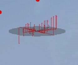 I've had a number of questions regarding the HUD radar overlay which you see in the screen shots at top left. This display is configurable via the preferences menu to give you either a "perfect" god's eye view around you, or a more realistic display. This threat indicator shows the position of other aircraft relative to yours, with the vertical lines showing the pitch position and the more or less horizontal lines within the smoked disk showing the relative yaw position. Red are enemy, blue are friendly.