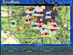 ![]() Mission Recorder How Do You Want It? Flexible Gameplay It's at this point that USAF builds on its strong suit. I chose to fly the mission in the F-117, but after I had hit my target and was out of SAM range, I decided to visit some other action. Hitting ESC brings up the Tactical Display. From here you can click on any of the aircraft listed along the bottom of the screen, and either VISIT (you can observe but have no control) or FLY (jump in the pilot's seat and get in the action.) If you choose to VISIT, be sure you selected AP NAV mode when you left your assigned aircraft. In fact you don’t have to go back to the Tactical Display/Map view to switch planes, you can do it in-flight via a shortcut (SHF 1-4). You can also VISIT other aircraft via the Tactical Display if you have a long ingress to target. I visited an F111 which was about fifteen miles from the target area when I was still fifty miles out. The action over Baghdad was intense. Go to Part III: More on Gameplay